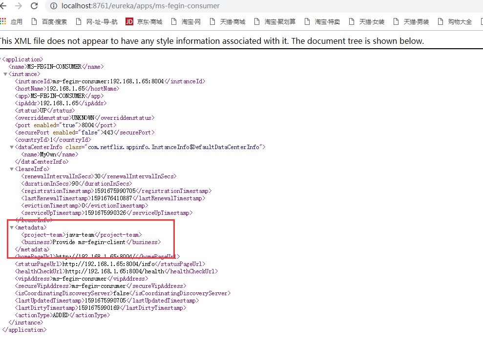 instance: prefer-ip-address: true instance-id: ${spring.application.name}:${spring.cloud.client.ipAddress}:${spring.application.instance_id:${server.port}} metadata-map: business: Provide ms-fegin-client project-team: java-team